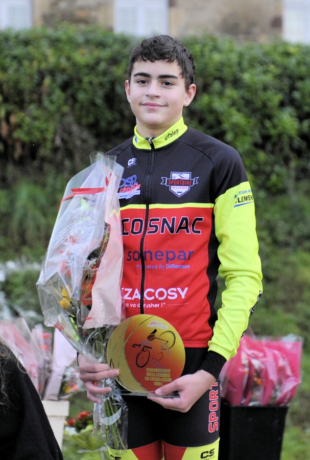 1- Quentin LEONARD (UC Lubersac), 2- Adrien SOULIER (VC Cosnac), 3- Clément SOULIER (VC Cosnac)