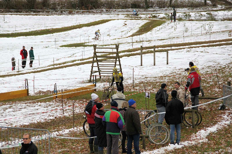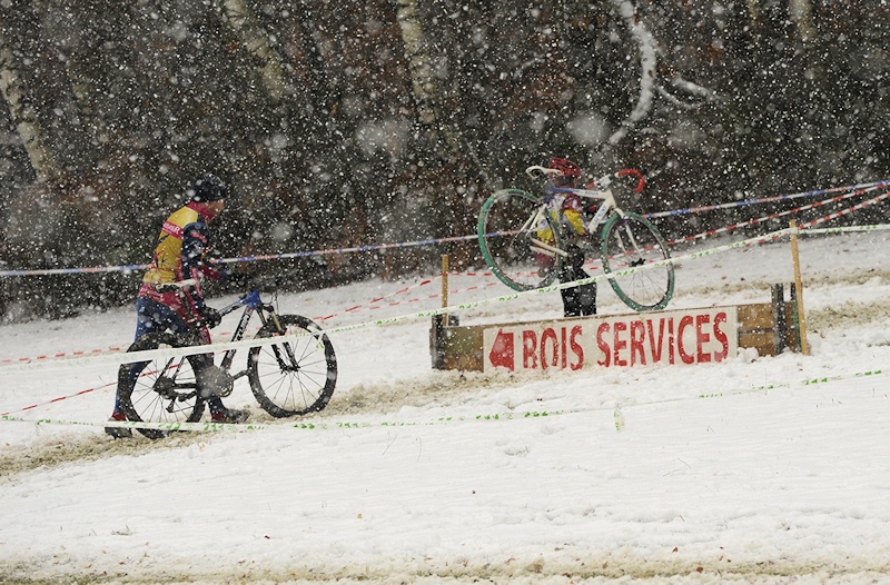 Seul Cyclo-Cross en Corrèze, l'épreuve organisée par l'UC Brive autour du plan d'eau du Coiroux à côté d'Aubazine, a connu un franc succès malgré des conditions atmosphèriques difficiles. Sur ce circuit roulant, les protagonistes ont composé avec les difficultés liées aux intempéries du moment, à savoir la neige et le froid (-1° par moment). Le public présent autour du circuit (à qui il faut rendre hommage pour sa tenacité fasse aux éléments) a assisté à de belles bagarres entre les favoris du jour. Toutes les courses ont été passionnantes et même si dans la catégorie reine David MENUT avait course gagnée à mi-épreuve, il n'en reste pas moins que les places d'honneur ont connu de nombreux rebondissements. Une mention spéciale pour le local Adrien SOULIER (licencié à l'UVL) qui s'est arraché pour conquérir la deuxième marche du podium aux dépends de Sébastien LAPOUGE. Il ne pouvait pas faire moins pour honnorer le tracé du circuit concoté par son frère aîné.