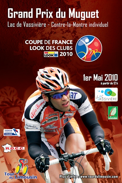 Comme nous vous l'annoncions en fin d'année dernière, une nouvelle course cycliste voit le jour le 1er mai 2010, en Limousin : le Grand Prix du Muguet. Il s’agira de la 3ème manche de la Coupe de France des Clubs LOOK. Tour du Limousin Organisation souhaitait vivement mettre sur pied une nouvelle épreuve de renom en Limousin, permettant d’attirer les meilleures équipes cyclistes françaises de niveau amateur. « Avec cette course, il s’agira de valoriser le site du Lac de Vassivière au travers d’une épreuve originale », nous explique Claude FAYEMENDY, Président de Tour du Limousin Organisation. « L’épreuve prendra la forme d’un Contre-la-Montre individuel. Ce type de course à toute sa place en Limousin et particulièrement sur le circuit Raymond Poulidor, autour du Lac de Vassivière ».