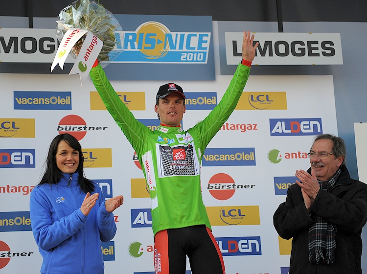 Le Paris-Nice 2010 a passé deux jours en limousin. La deuxième étape qui menait les coureurs de Contres à Limoges a vu la victoire au sprint de William BONNET (Bouygues Telecom). Malgré une échappée au long court de quatre téméraires, les équipes de sprinteurs ont trouvé, comme souvent, les ressources pour revenir sur les fuyards à une quinzaine de kilomètres de l'arrivée devant le statde mythique de Beaublanc à Limoges. Mais une chute collective dans le dernier kilomètre a changé la donne, et William BONNET, bien placé à ce moment de la course, a parfaitement mené sa barque pour coupé la ligne d'arrivée en vainqueur après un sprint lancé de loin par Luis Leon SANCHEZ (Caisse d'Epargne). Au final, il devance sur la ligne, Peter Sagan (Liquiguas).