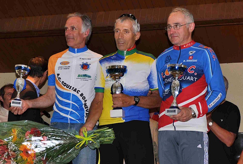 + 60 ans : 1- Gérard Bouillot (EC Peyrat 23), 2- Serge Hidot (ESC Le Grand Bourg), 3- Guy Fredouelle (VC Gouzon)