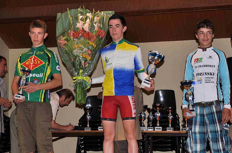 Cadets : 1- Guillaume Hudin (EC Peyrat 23), 2- Guillaume Rougier (UC Felletin), 3- Nicolas Verdy (AC Creusoise)