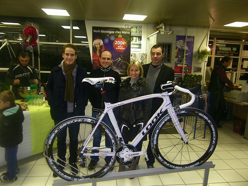 Toujours égal à lui-même, Maxou a saisi l’occasion offerte par Patricia et Laurent Pacih pour recevoir ses amis. Une sympathique réception placée sous le signe de l’amitié était organisée au magasin Culture Vélo, où Maxime présentait le nouveau vélo Look 695 qui équipe le Team Bigmat Auber cette saison.