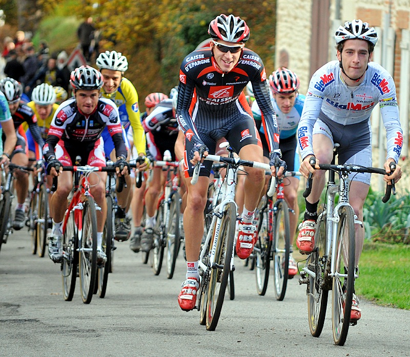 A 15h30, la course des champions est lancée. Les hommes du CRCL ont décidé de prendre la course en main: David THELY se porte aux avant-postes dès les premiers hectomètres suivi de près par Loïc HERBRETEAU son nouveau coéquipier. Derrière, à quelques encablures, un trio dans lequel on retrouve Adrien SOULIER (UVL), Jason VALADE (CRCL) et Julien SURVILLE (CC Mainsat) qui tente de limiter les dégâts. Alors que derrière chacun se bat pour sauver une place d'honneur, David THELY en tête de course continu d'accélérer et c'est Loïc HERBRETEAU qui en fait les frais. Le rythme du jeune espoir du CRCL fait craquer son coéquipier qui doit faire face à un "coup de moins bien". Même si les écarts ne sont pas définitifs, l'aisance de David THELY laisse supposer que rien ne peut lui arriver.