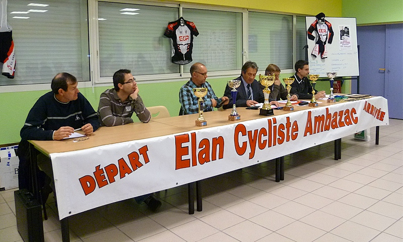 Le Président ROY a remercié tous les bénévoles du club pour leur investissement et tous les coureurs pour leurs performances tout au long de la saison (29 victoires, 32 places de deux, etc...). Il a plus particulièrement félicité Kevin DELORD, vainqueur du Challenge Limousin des 2ème catégorie et lauréat d'une épreuve nationale (Tour du Canton de Gentioux). De même, il a souligné la superbe performance de Martin COULONDRE, 3ème des Championnats du Limousin Route à Chalus, et le comportement exemplaire de Vincent GUILLOUT qui a disputé plus de 40 épreuves dont une 8ème place lors du Tour du Cameroun avec les équipes Pro-Continental.