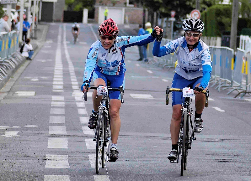 Dans les catégories où il était plus difficile de dégager des noms pour les titres, le suspense n’a pas été moindre, sauf en 17/19, J. Camus ayant pris les choses en mains pour ne pas prendre des risques. Il l’emportait facilement devant J. Raynaud et K. Benard. Les 15/16 arrivaient à 3 pour le podium, D. Breux lançait le sprint à l’entrée du bourg mais D. Betoulle restait dans sa roue et le coiffait au dernier moment, laissant la 3ème place à P. Lucas. Le peloton des 50 et + restait longtemps groupé malgré beaucoup d’attaques en début de course. Après le dernier passage sur la ligne, B. Menier sortait tranquillement, rejoint par D. Klein, puis par E. Monjoffre. Les 3 se présentaient ainsi pour l’arrivée et là encore les ultimes coups de pédale faisaient la décision : Klein-Monjoffre-Menier.