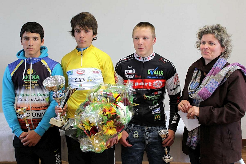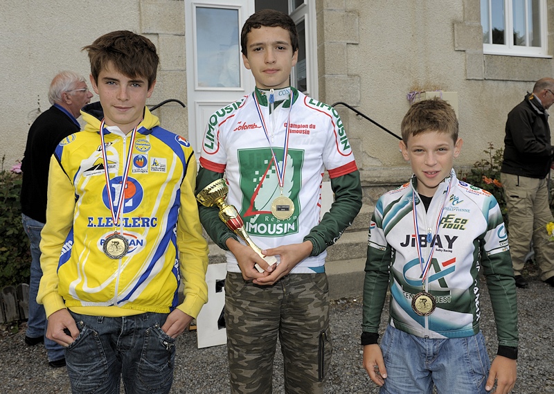 Les débutants se sont eux aussi bien comportés. Léo Babaudou (Haute-Vienne), pour son 4ème cyclo-cross, arrachait au sprint la 8ème place avec beaucoup de détermination, K. Lebraud (Haute-Vienne) après une chute qui le retardait considérablement ne se décourageait pas et revenait au 14ème rang, Thomas Morichon (Haute-Vienne) parti timidement et aux prises avec des soucis de freins inefficaces se lâchait quand même et courageux, terminait 17ème. Benjamin Dulau (Haute-Vienne) auteur d'un excellent départ mais souffrant après une chute, rétrogradait un peu en fin de course. Cette catégorie était récompensée par une médaille d'argent par équipe. A noter le très bon comportement d'ensemble de ces jeunes, tant dans les résultats que dans la manière, avec un très bon état d'esprit, tous disciplinés, écoutant et appliquant les conseils, et combatifs en diable sous les regards attentifs du président Nantiaud et de J. Montjoffre. Les 2 clubs formateurs de l'US Nantiat et de Briance Roselle Aventure recueillent ainsi les fruits de leur travail. Chez les Creusois, il convient de mettre en évidence l'excellent classement obtenu par Mandfred DUJARDIN qui termine à la 10ème place. Gaétan THEVENOT (Creuse) termine 32ème.