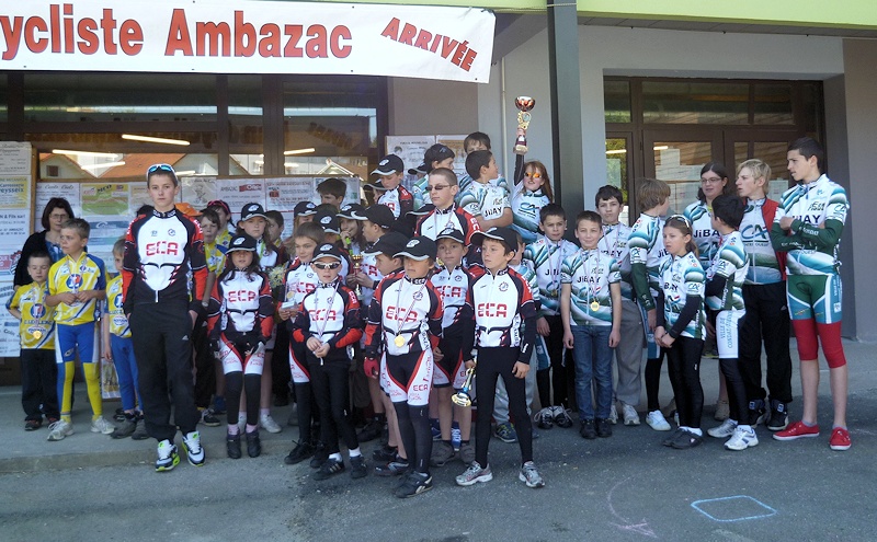 Bien encadrés par leurs éducateurs, ils ont mis en avant le renouveau du cyclisme en corrèze qui était bien moribon ces dernières années. Il est toutefois dommage qu'ils n'aient pas pu assister dans une tribune à l'arrivée de leurs idoles comme cela était le cas par le passé. Cela restera un beau souvenir pour eux. A noter que le jeune Jason LEGRAS (UC Brive) a été sélectionné pour disputer sur les Champs-Elysées à Paris la finale de la petite boucle Nesquick du Tour de France 2012 qui rassemblait plus de 1700 enfants de toute la France. Jason termine à la cinquième place à Paris. Bravo à notre Champion en herbe !