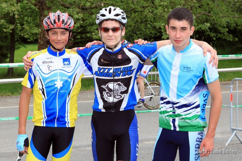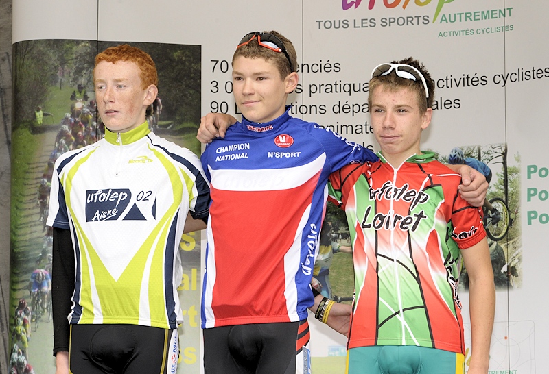 En Cadets, Anthony KUENTZ (Nord Pas de Calais) s'impose devant Lucas DUBAU (Champagne Ardenne) et Hugo BRIATTA (Ile de France). Raphaël DUBUC (Creuse Oxygène) termine à la 12ème place à 1'10" du vainqueur. Florian MILLORD (US Nantiat), le Champion National Ufolep 2010/2011, prend une très méritoire 38ème place.