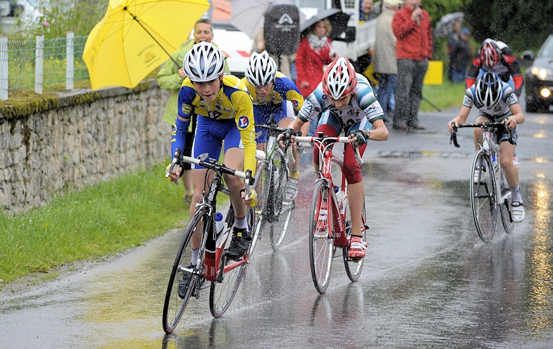 Un peloton fort de 120 unités s'est élancé de Chateauponsac (87) pour parcourir les 129 kms d'un circuit exigeant. Dès les premiers tours de roues de copieuses averses de pluies sont venues s'abattre sur le peloton afin de rafraîchir les ardeurs des favorites. Mais comme souvent, après la pluie le beau temps. Au km 21, Marianne VOS (Pays-Bas) accompagnée de Alena AMIALIUSIK (BePink) décide de durcir la course. A l'amorce de la côte de Lavillaureix (km 32) elles comptent 24 sec d'avance sur un peloton disloqué contrôlé par l'équipe des Pays-Bas. Dans le 3ème MG de la journée, Tatiana ANTOSHINA (Russie) sort du peloton et rejoint les deux échappées peu avant Roussac. L'avance des trois filles qui vont bon train sous l'impulsion de Marianne VOS atteint désormais 3'40. Marianne VOS, venue sur ce Tour Féminin en Limousin en préparation pour les prochians JO, ne compte pas ses efforts. Derrière, le peloton dans lequel on retrouve la lauréate de l'édition précédente Greite TREIRE (Michela Fanini) piégé, semble résinié.