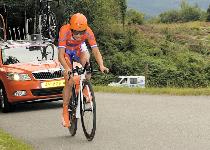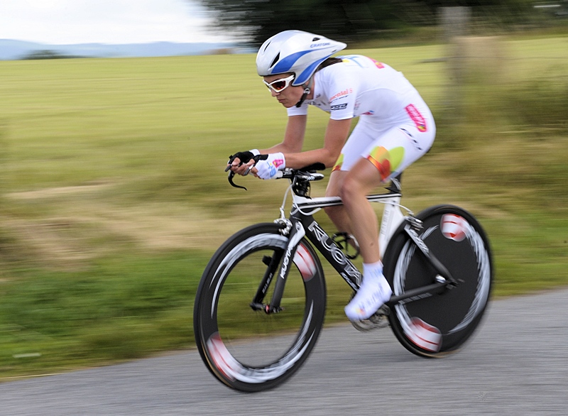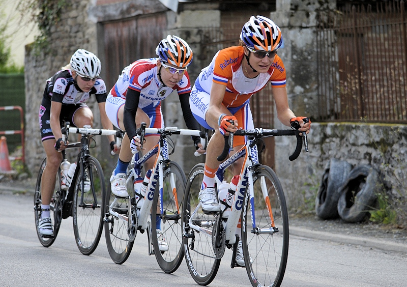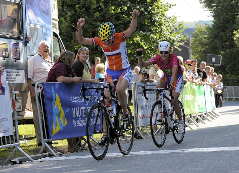 On attendait Marianne VOS (Pays-Bas) et ce fut Anna VAN DER BREGGEN (Sengers Ladies Cycling) sa compatriote ! Cette jeune hollandaise de moins de 23 ans a déjoué tous les pronostics des suiveurs. Sur un parcours des plus sinueux et demandant des efforts soutenus tant la difficulté était au rendez-vous, il fallait être très forte pour battre la n°1 mondial. Mais Anna est actuellement en grande forme. Victorieuse le week-end dernier du Tour de Bretagne, elle nous aura montré, tout au long des 18 kms du parcours autour de Bourganeuf, son énorme potentiel.
