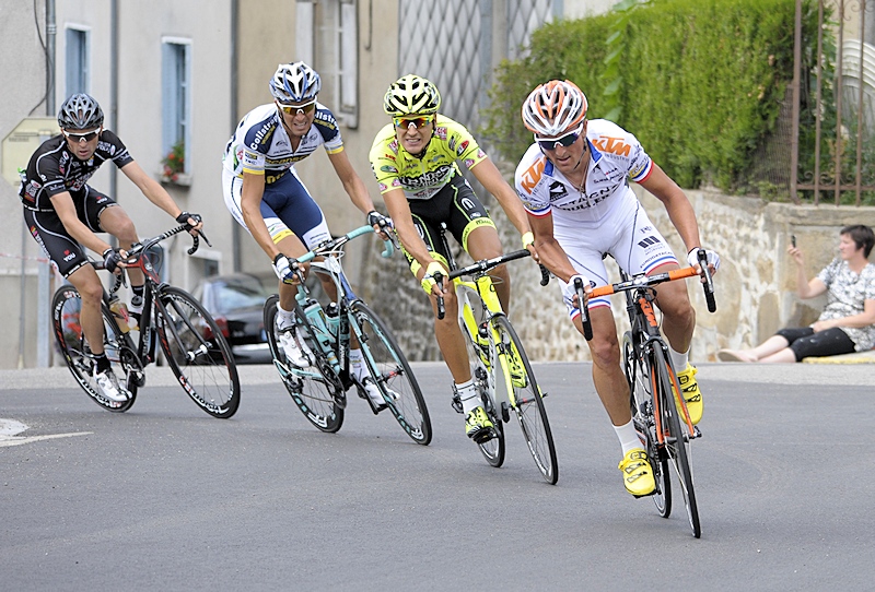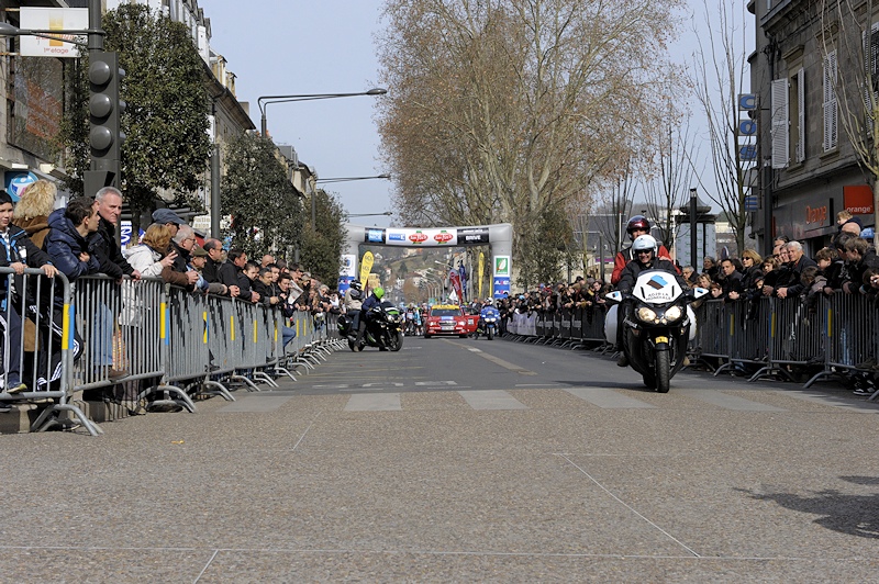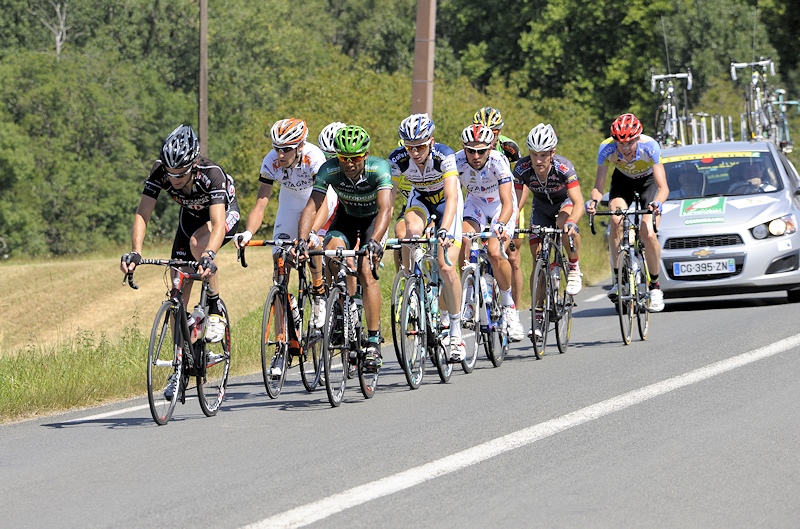 Peu avant Bassillac, l'écart est de 6'20". Le peloton semble "mettre en route" sous l'impulsion des équipiers de Julien SIMON (Saur-Sojasun), deuxième du classement général. AU premier passage sur la ligne d'arrivée à Trélissac, le peloton accuse un retard de 3'55". Il reste encore 70 kms à parcourir. L'échappée commence à perdre quelques unités alors qu'à u passage de Château L'Evêque, le peloton est revenu à 2'20" de la tête de course. Il ne reste plus que sept coureurs en tête à Sorges, à 35 kms de l'arrivée, et le peloton est désormais pointé à 1'45" des échappés. Le final risque d'être sérré !