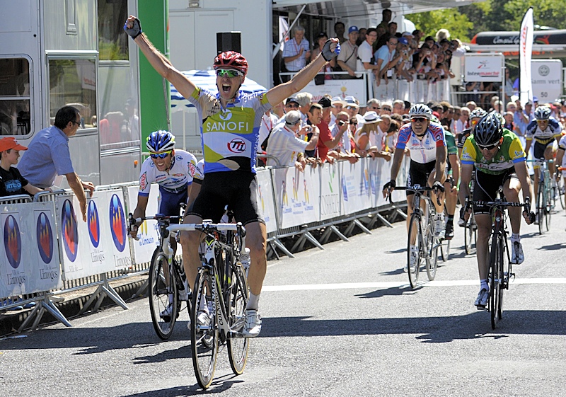 Au passage à Javerdat, l'avance des fuyards a fondu comme neige au soleil. Au premier passage sur la ligne d'arrivée à Saint-Junien, quatre hommes enmenés par Evaldas SISKEVICIUS (La Pomme Marseille) et Jérémy ROY (FDJ Big Mat) resistent encore au peloton. A 3 kilomètres de l'arrivée, l'avance de l'échappée n'est plus que de 18". Evaldas SISKEVICIUS s'extirpe du groupe et résiste au retour du peloton dans la montée vers la ligne d'arrivée à Saint-Junien. Il remporte l'étape avec 6 secondes d'avance sur le peloton réglé par Steven TRONET (AUber 93) devant Julien SIMON (Saur-Sojasun). Par la même, il prend la tête du classement général avec une seconde d'avance sur Julien SIMON.