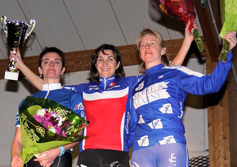 Chez les Féminines, Alexia Dumet, pour son 1er national et après avoir eu des soucis avec ses pédales, prend une 10ème place en 17/29 ans qui l'a bien déçue, mais on va voir plus loin qu'elle était ô combien importante. Maryline Boutin (30/39 ans) après avoir fait une bonne partie à la 3ème place faisait un écart au dernier tour, et le temps de revenir en piste et de vérifier le matériel, elle se faisait prendre son bien par la concurrente qui la suivait avant l'incident. Sylvie Japaud-Faure après un départ moyen se plaçait dans la roue de sa principale rivale et y restait bien calée... jusqu'à la chute de la 1ère. Elle pouvait l'éviter et poursuivait son chemin jusqu'à une large victoire et un nouveau titre bien mérité. Les 3 filles associées emportaient donc la médaille de bronze par équipe, ce qui contribuait à consoler Alexia. Claire COLON (Creuse) termine 13ème. Rachel CATEL et Fanny FOURNERON (Creuse) terminent respectivement 9ème et 10ème. Emmanuelle BERNARD en 40/49 ans (Creuse) se hisse à la 7ème place. Dans cette catégorie, l'équipe de la Creuse termine 5ème par équipe.