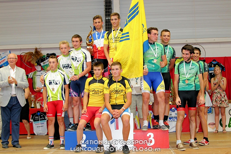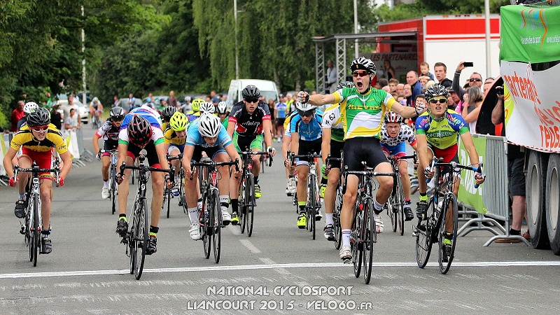 Chez les Cadets, Antoine GRAND (Auvergne) s'impose d'un rien au sprint devant Nicolas BOUDAT (Aquitaine)