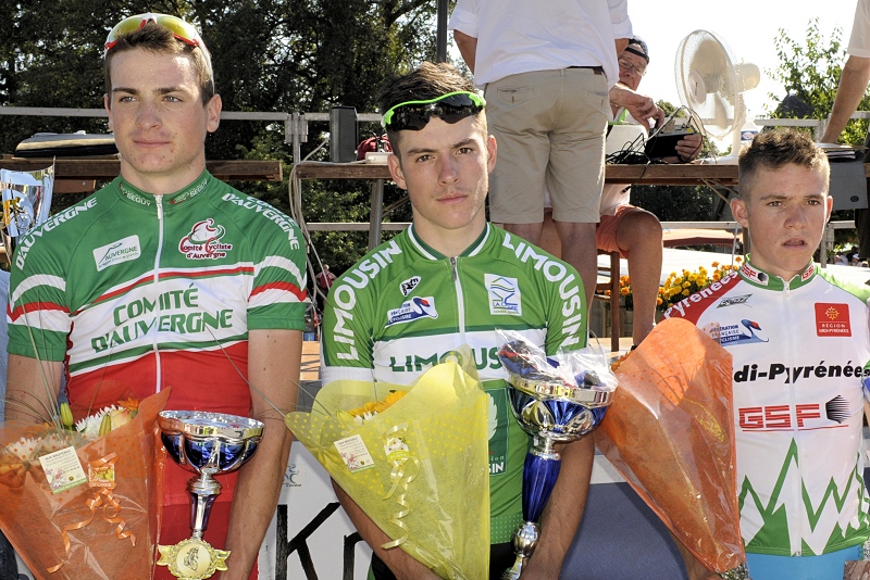Corentin Buisson a remporté, ce jeudi 6 août, le Challenge GSO Juniors, qui s'est disputé sur le circuit du Bol d'Or à Chaumeil. Une échappée à 9 s'est constituée dès le premier tour de 21 kms (6 au total). Parmi les hommes de tête, on note la présence de Corentin ROUX de la sélection de Midi-Pyrénées (fils de l'ancien professionnel), Corentin BUISSON et Corentin MENANT de la sélection du Limousin. Dans la dernière boucle les plus costauds se retrouvent aux avants-postes et la victoire se dispute au sprint et c'est Corentin BUISSON (UVL) qui s'impose devant Simon CAVAGNA (Auvergne) et corentin ROUX (Midi-Pyrénées).