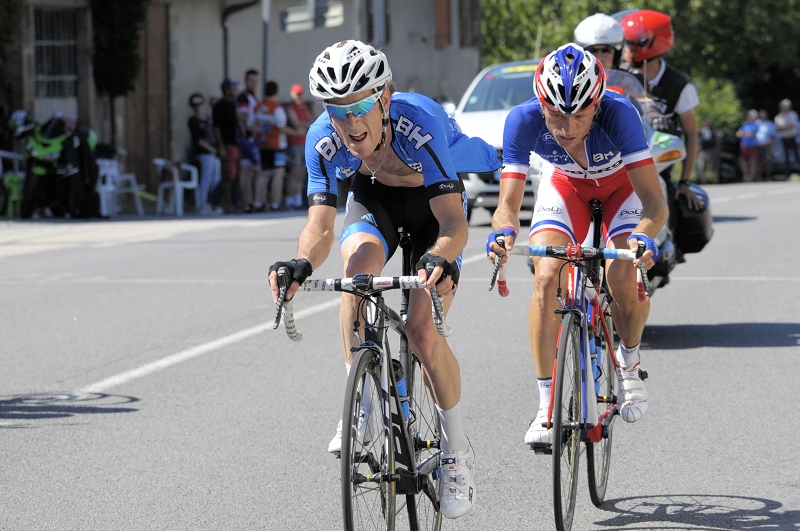 Dans la côte du Pont du Dognon 3 coureurs sortaient prenant jusqu’à 30“ au reste du groupe mais le regroupement s’effectuait peu avant St Priest Taurion. Dans la côte du Mazeau, nouvelles escarmouches et finalement le groupe éclatait littéralement sous l’impulsion de Maxime Dulau (UVL), qui était rapidement repris , et désormais 8 coureurs contituaient l’avant-garde de cette course : Beluc, Geaujar (AC2R), Marginier, Bastien (Minnerva oil), Cassan (UCC), Dulau (UVL), Lévéque (Girondins de Bordeaux) et Pelizzari (Cyclo Seyssinet).