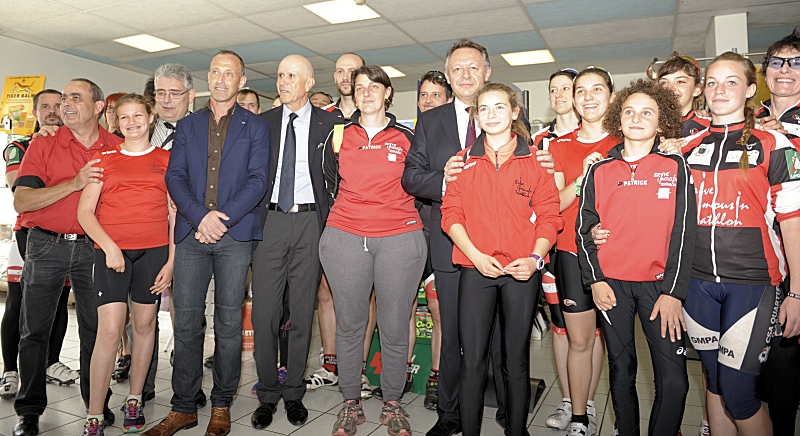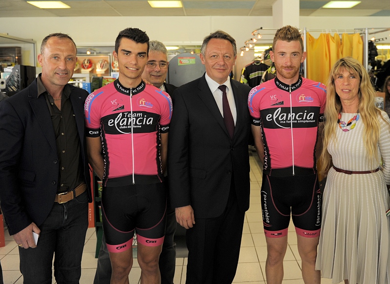 Monsieur le Ministre a salué et encouragé les cyclistes des clubs présents et notamment les jeunes de Brive-Triathlon, l'équipe de l'ASPTT Brive et les représentants du Team Elancia VC Tulle. Madame La Députée, Sophie DESSUS, a longuement discuté avec Vincent GOUMY et Alexis SIMOES du Team Elancia. Ce dernier a d'ailleurs évoqué avec Monsieur le Ministre les bienfaits que lui ont apporté l'étude posturale proposée par Alain DE Carvalho et toute son équipe.