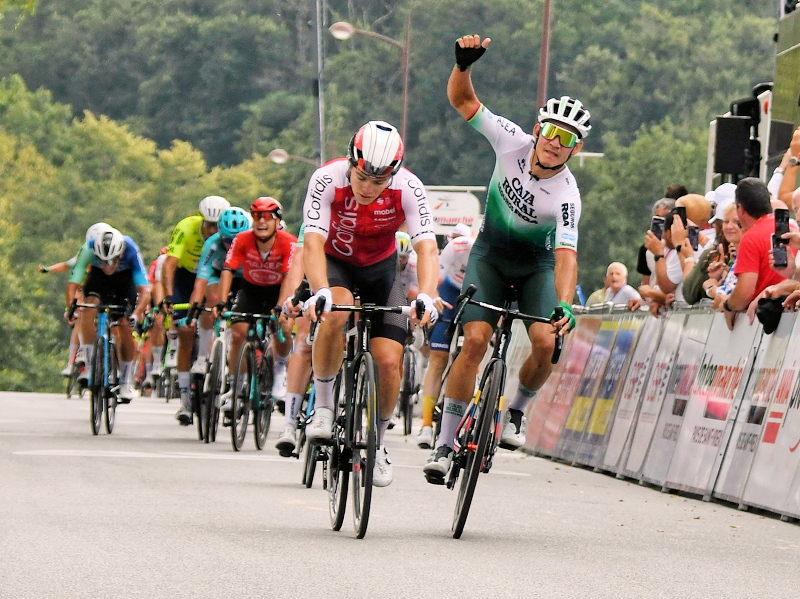 Il reste moins de 10 kms et l'allure est très rapide. Jordan JEGAT compte 10" d'avance mais à moins de 5kms de l'arrivée il est repris par l'avant-garde du peloton. Le sprint massif semble se profiler. Et c'est Orluis AULAR (Caja Rural) qui s'impose d'une demie-roue devant Axel ZINGLE (Cofidis) et Dorian GODON (Décathlon AG2R). A noter la belle 4ème place du régional Baptiste VADIC (TotalEnergies) et la 8ème place de Valentin RETAILLEAU (Décathlon AG2R).