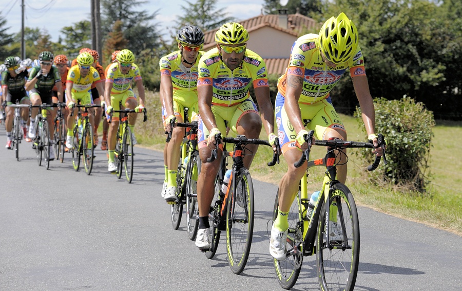 Davide REBELLIN (CCC) mène le groupe dans la côte de Dampniat